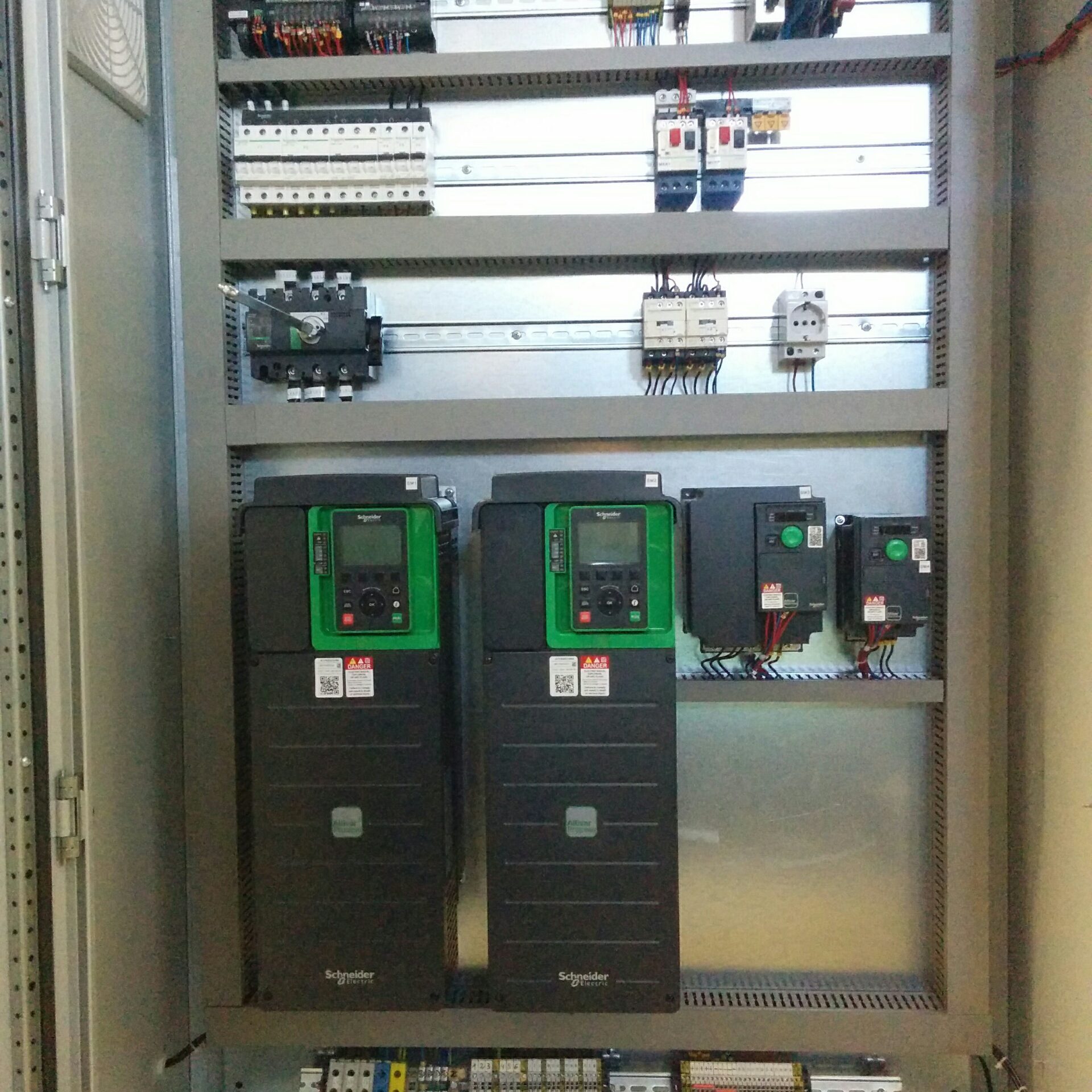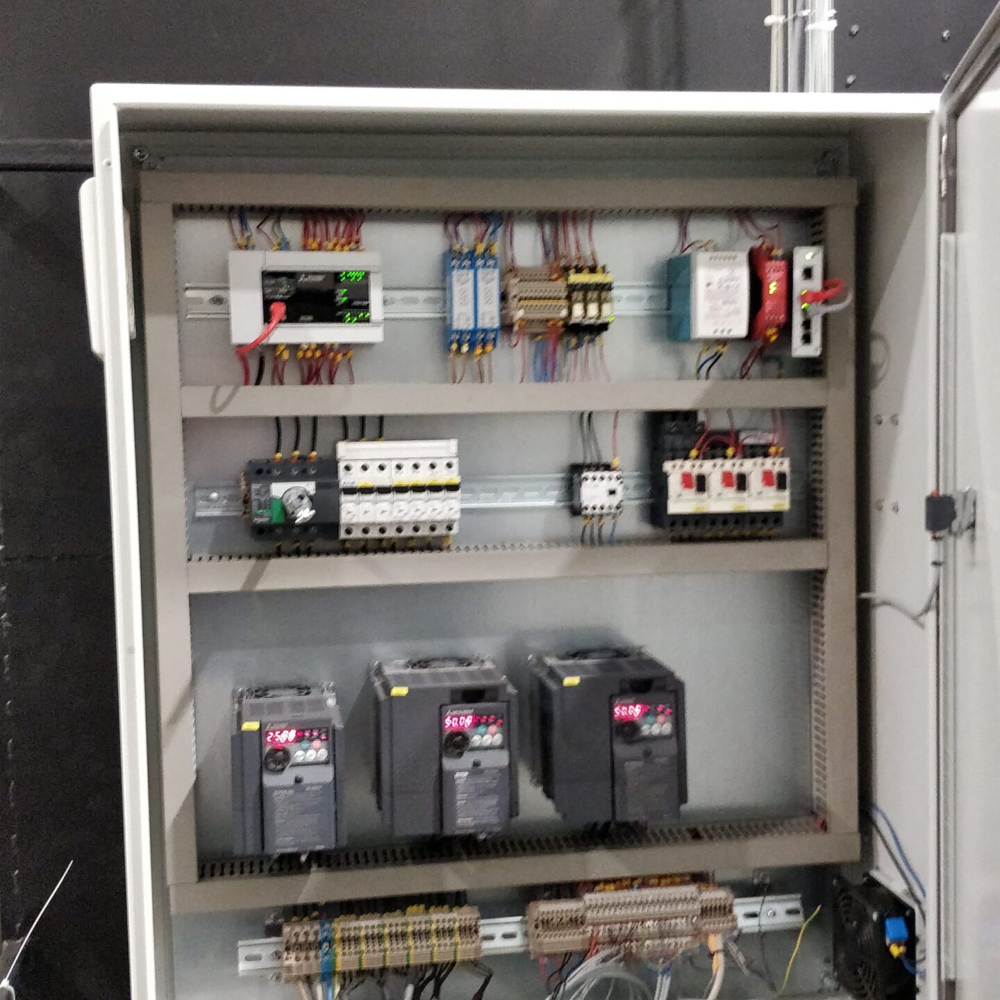 Kasutame peamiselt Mitsubishi Electrics tööstuskontrollereid (PLC), Juhtpaneele (HMI), Servo kontrollereid, Servo võimendeid, Sagedusmuundureid (VFD) aga vajadusel või kliendi soovi korral kasutame Siemens, Omron või mistahes muu tootja komponente.